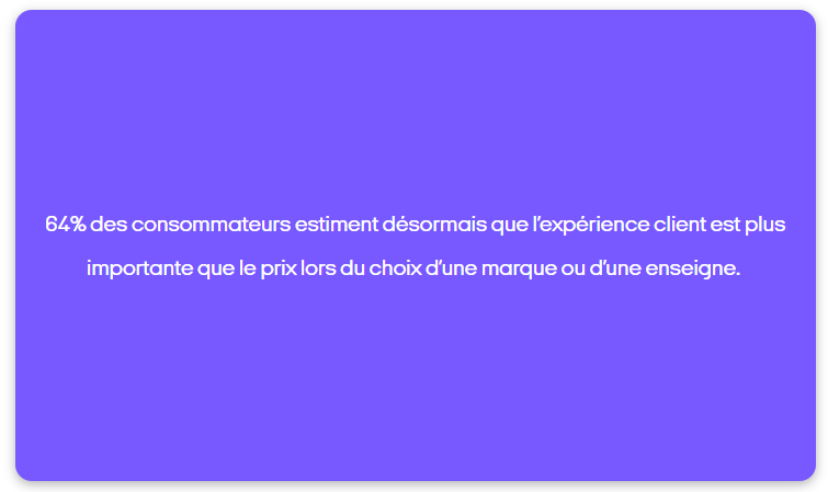 Dans ce contexte ultra concurrentiel, la dimension expérientielle ( ou “expérience client”) dans le processus d’achat est devenue cruciale : d’après une étude réalisée par le cabinet Gartner, 64% des consommateurs estiment désormais que l’expérience client est plus importante que le prix lors du choix d’une marque ou d’une enseigne.