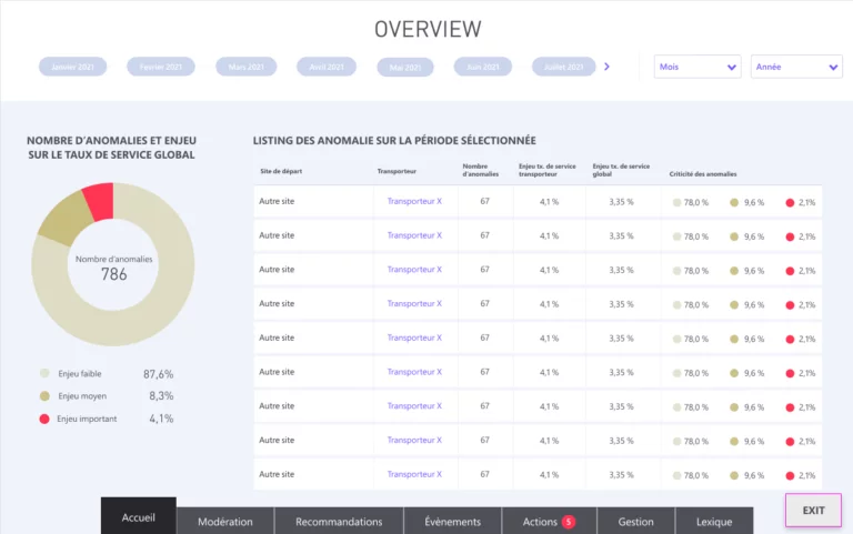 Et cela peut aller jusqu’à l’action en temps réel, en collaboration directe avec les transporteurs, pour assurer un véritable monitoring de la qualité de service. Dans ce cas, l’intégralité des évènements remontés par les systèmes de tracking des différents transporteurs est homogénéisée et les anomalies sont automatiquement catégorisées, afin de permettre à l’utilisateur de prendre toutes les mesures proactives nécessaires pour agir avant qu’il ne soit trop tard.